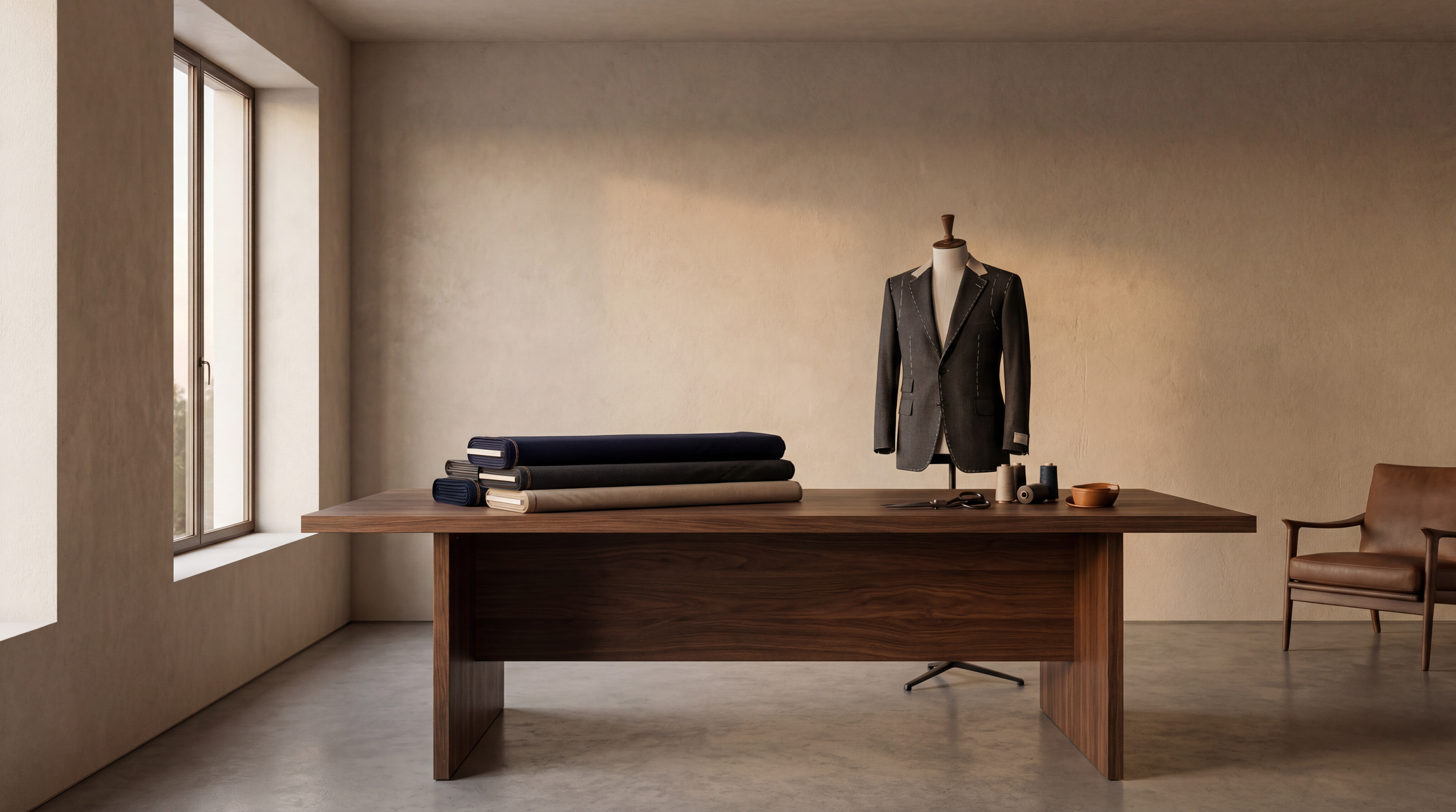 A private tailoring layer beyond the digital system. Travel Tailors. Rare fabrics. One-to-one commissions.